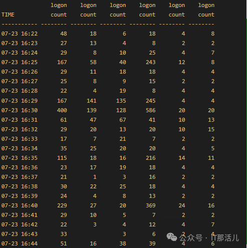 其它库 LOGON/LOGOFF 统计,UTC 时间 07/23 16:00,北京时间 07/24 00:00
