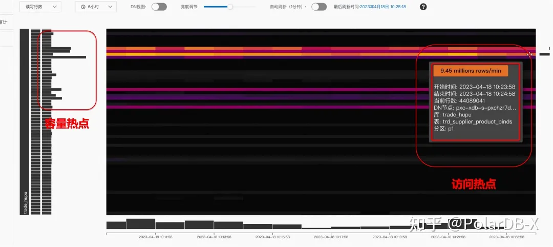 从集中式向分布式演进的过程中,数据会被打散到不同的节点,客户普遍担心的问题包括:相关联的表是否被打散到了不同的节点带来了性能瓶颈?访问频繁的表是否被打散到了同一个节点上?为了解决这样的困扰,PolarDB分布式版提供了分区热力图的功能,可视化实时观测各节点的容量和访问的瓶颈,通过准确定位大幅降低了迁移和日常运维的难度。