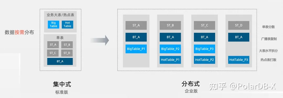 - 原始业务的大表,可以在线变更为分布式表,演进为分布式的水平扩展,通过扩展单个存储池内的分布式节点后,分布式表的partition会自动进行数据均衡调度。