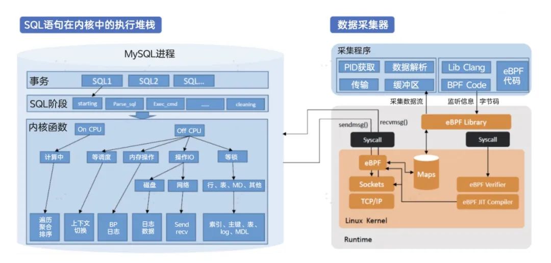 基于eBPF技术的MySQL内核级数据采集,窥探每条SQL的完整执行过程,提供精细化指标数据,做到异常现场可回放,不用靠猜测或者类似故障review即可得出真实结论。