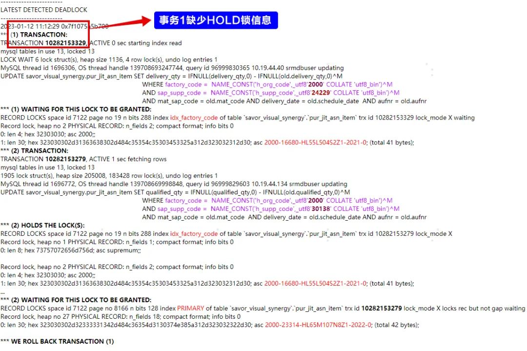 比如死锁日志,在5.6和5.7的MySQL内核中第一个事务的Hold锁信息是不打印的,日志中展示的都是当前执行的SQL,不能展示该事务的所有SQL,因此难以准确获得这个死锁环的完整形成过程。即使把死锁日志给到业务方也是很难彻底解决。