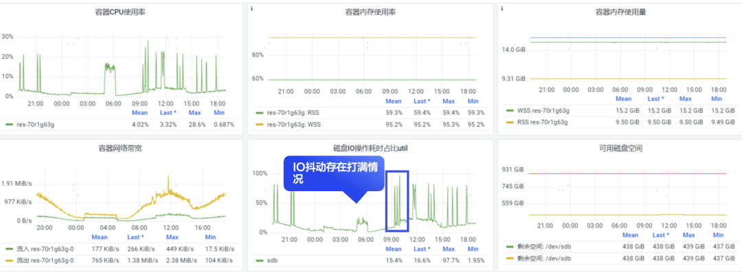 在巡检过程中,我们统计一周的数据库实例cpu和disk IO的使用情况,发现有很多实例都存在性能抖动打满问题,很难量化到是哪条SQL导致的。这让巡检同学很犹豫,不知道针对这项结果是处理还是不处理,处理的话没有现场数据不好排查,可能收益也甚微,如果不处理又担心成为随时爆炸的雷点。