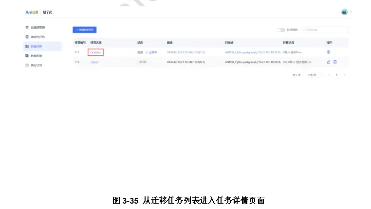 进入数据迁移,在列出的任务清单中,点击任务名称,打开任务详情页面。