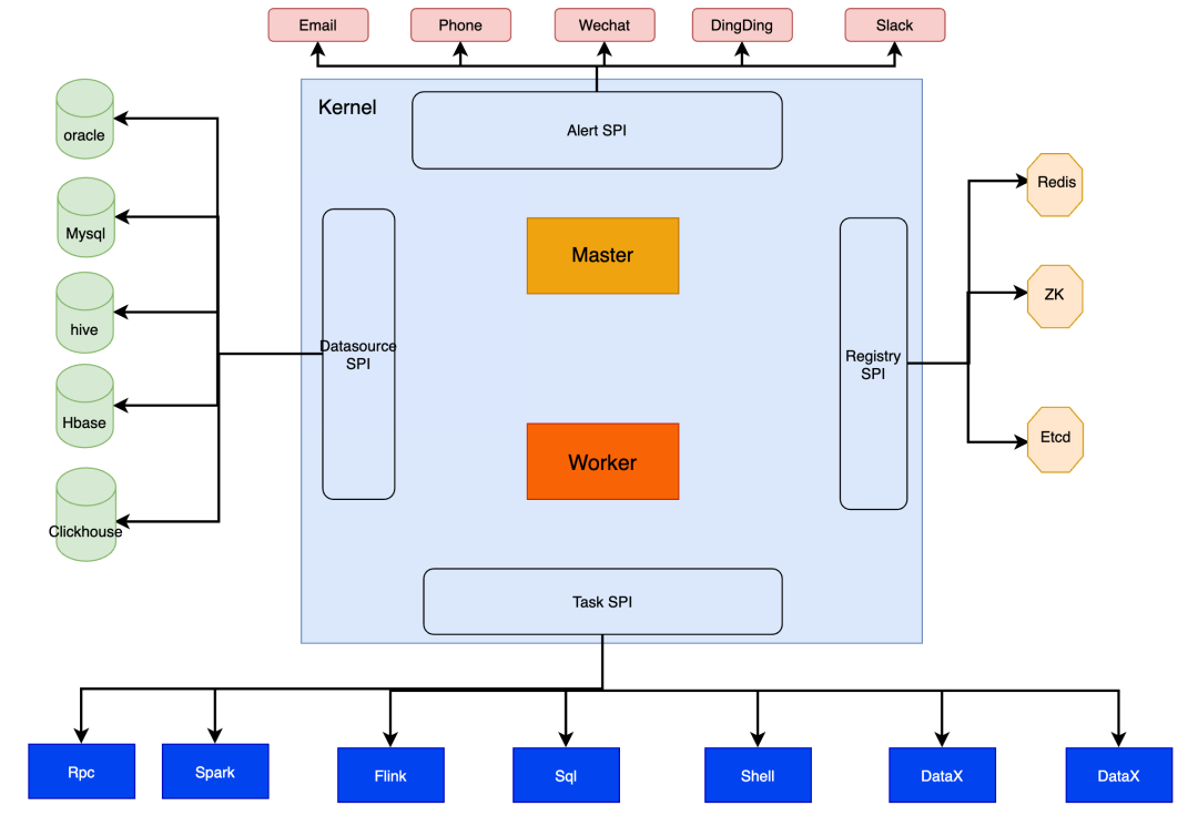 丰富的使用场景 — 包括流、暂停、恢复操作,以及额外的任务类型,如 Spark、Hive、MR、Shell、Python、Flink 以及 DS 独有的子工作流、任务依赖设计,扩展点采用插件化的实现方式