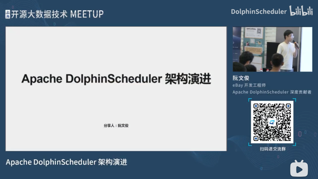 来自 eBay 的文俊同学在近期的上海开源大数据 Meetup 上做了十分精彩的 “Apache DolphinScheduler 的架构演进” 分享。本次分享有近 200 人参与,在线观看次数超过 2,500 次