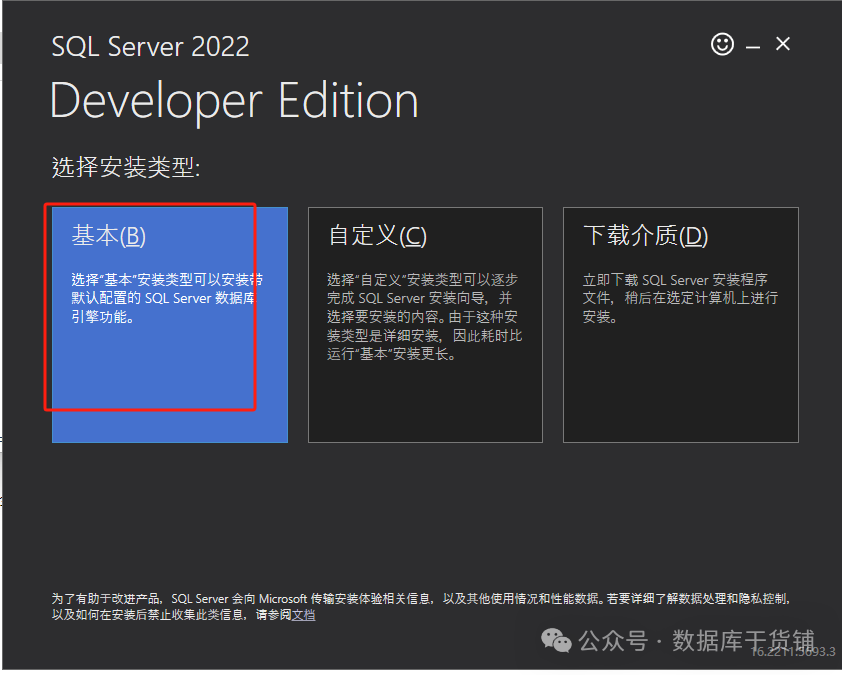 选择安装类型:学习使用阶段可以选择基本