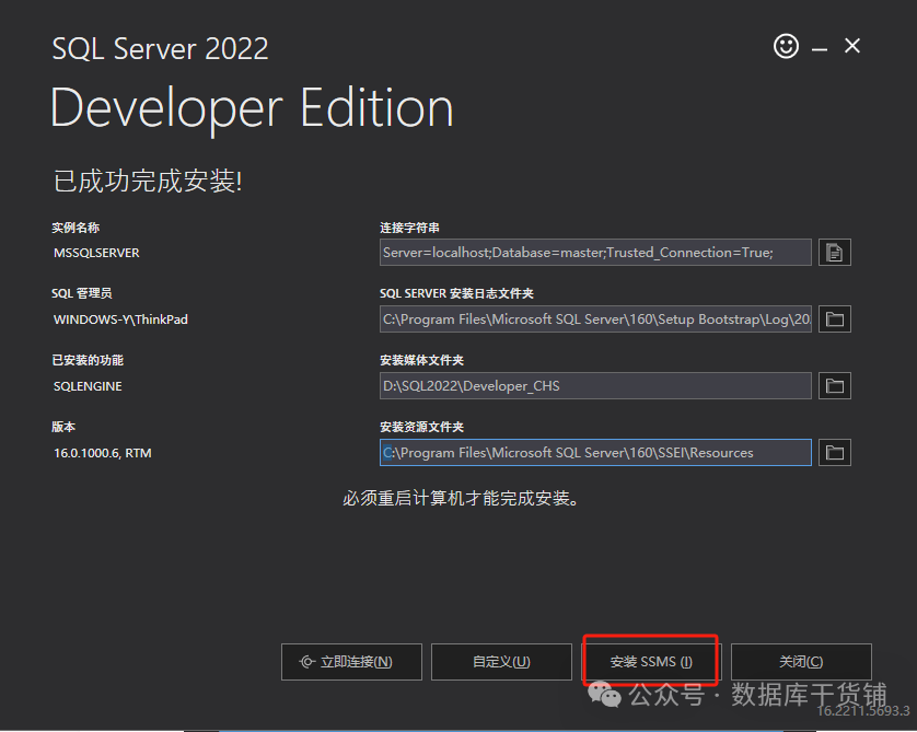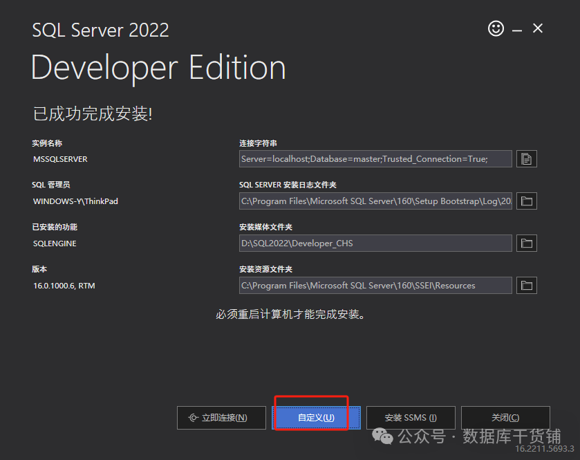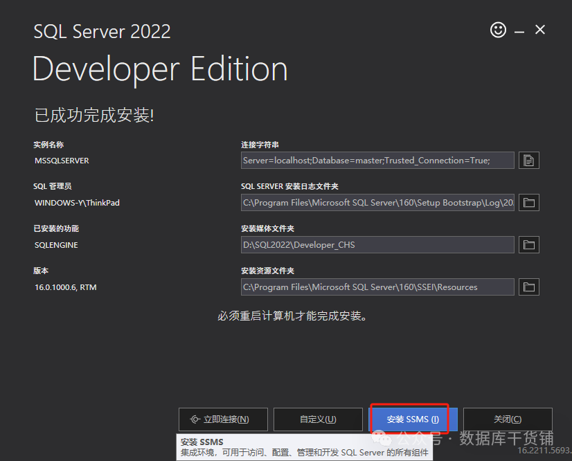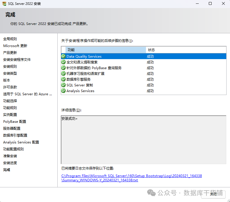 至此,SQL SERVER2022的安装就完成了。大家在安装使用的过程中有什么问题可以一起沟通交流。