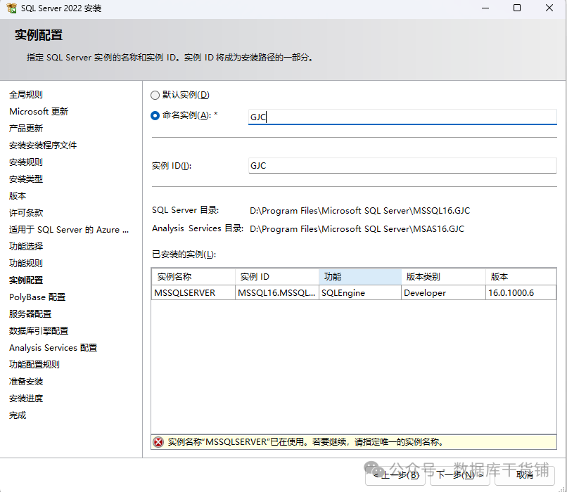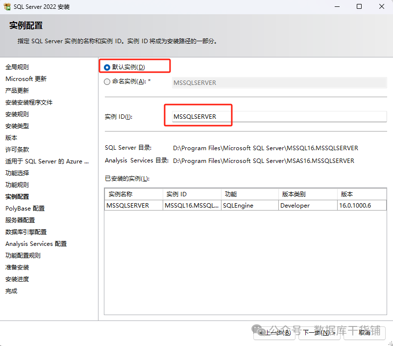 如果之前已经安装了其他实例,可以自定义实例名及ID