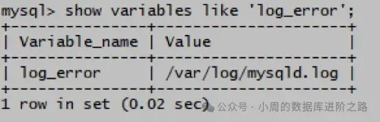 mysql> show variables like ‘log_error’;