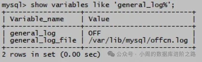mysql> show variables like ‘general_log%’;