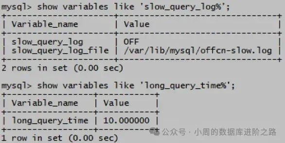 mysql> show variables like ‘long_query_time%’;