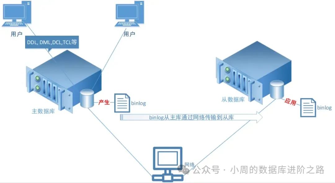 在建立从属数据库时,为了复制主库的数据使从库和主库一模一样,主库需要开启BINLOG日志,然后配置从属数据库,将主库产生的BINLOG日志定期通过网络传递到从数据库