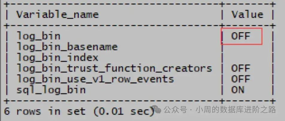 如果log_bin的值为OFF说明没有开启binlog