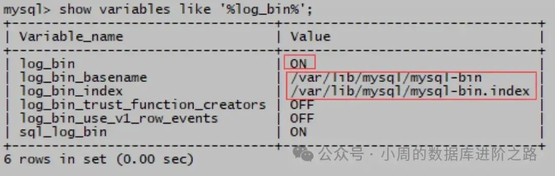 mysql> show variables like ‘%log_bin%’;