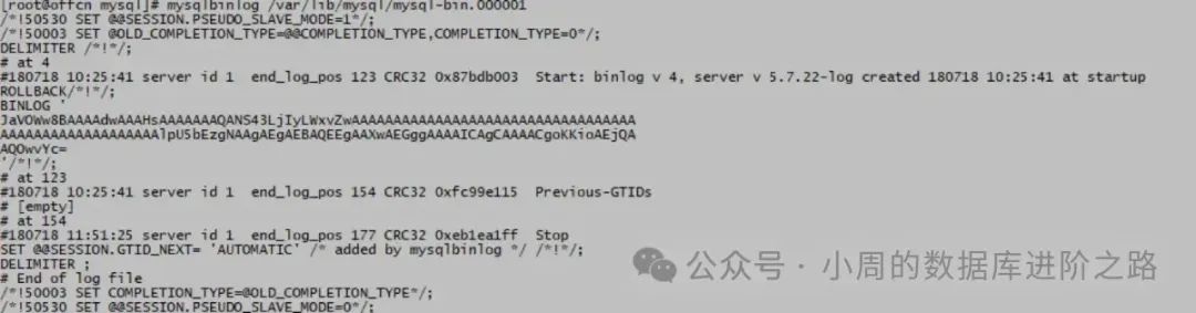 mysqlbinlog 输出中,事件前面会提供相关信息的头注释: