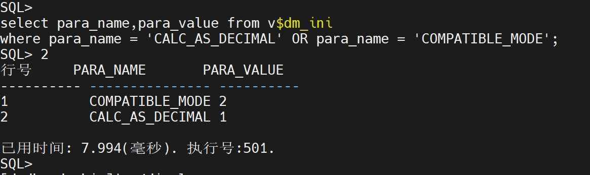 where para_name = 'CALC_AS_DECIMAL' OR para_name = 'COMPATIBLE_MODE';