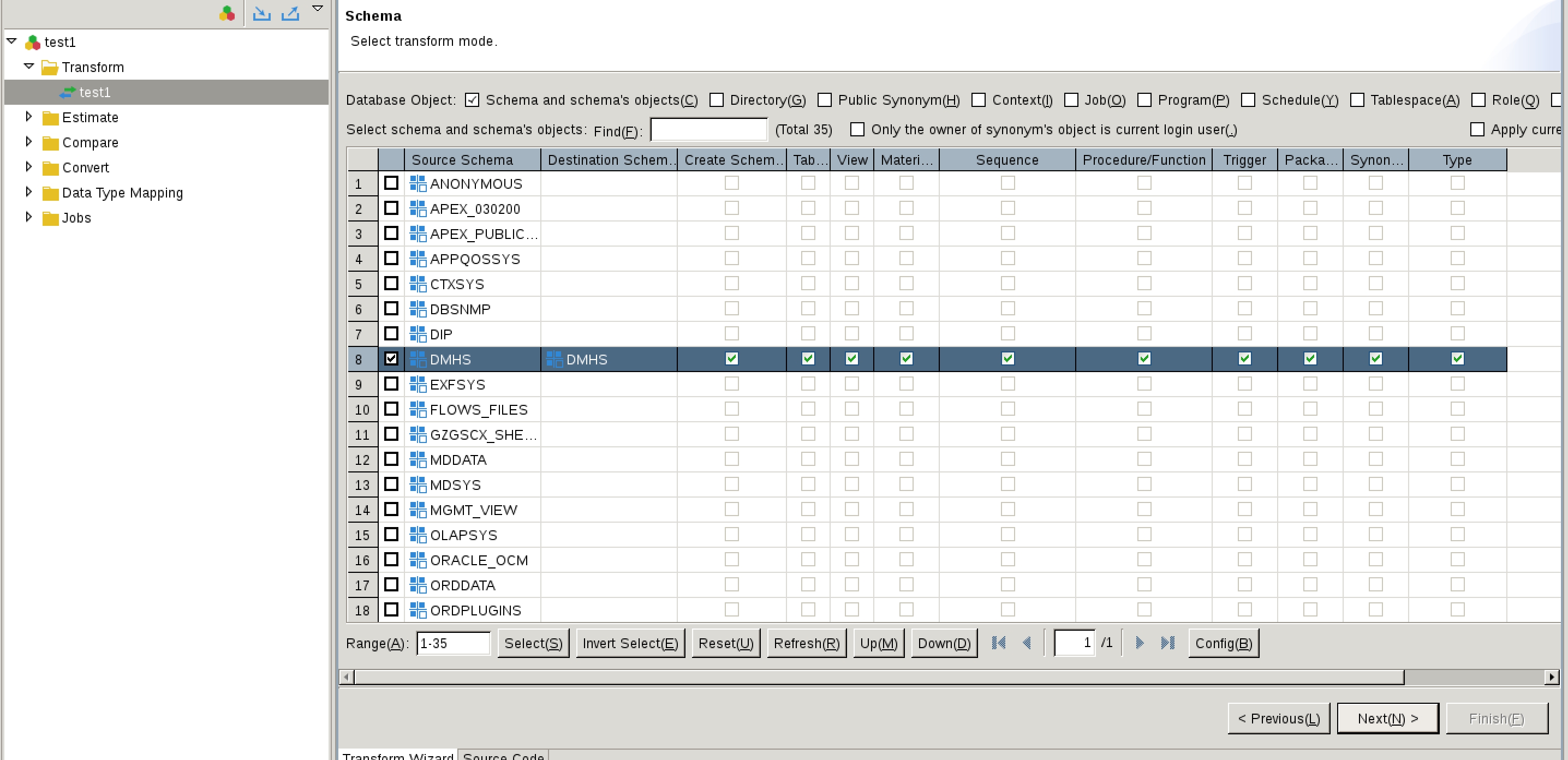 5.选择迁移对象、表等