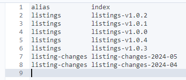 如果我们要获取别名为:listing-changes 的索引-别名列表信息。