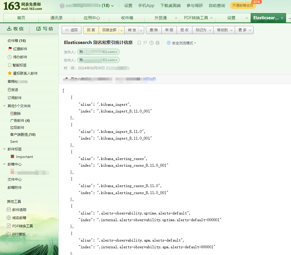 以下是一个简单的 Python 脚本示例,展示如何通过定时任务定期向指定邮箱发送 Elasticsearch 别名信息。
