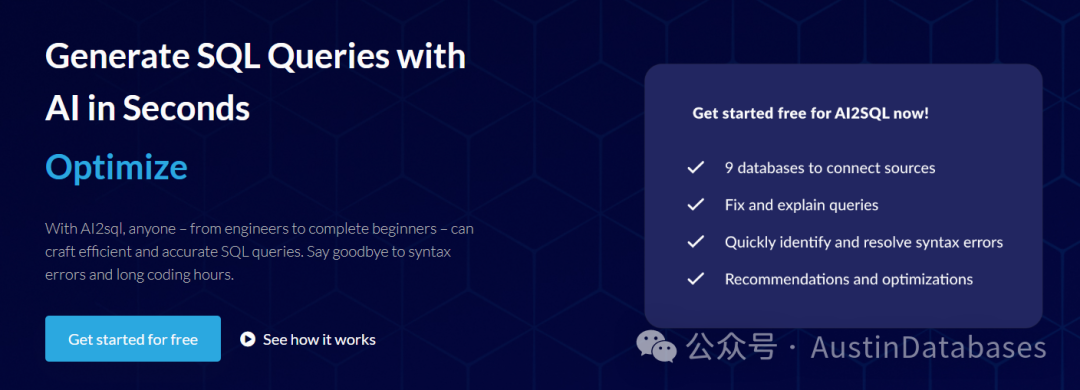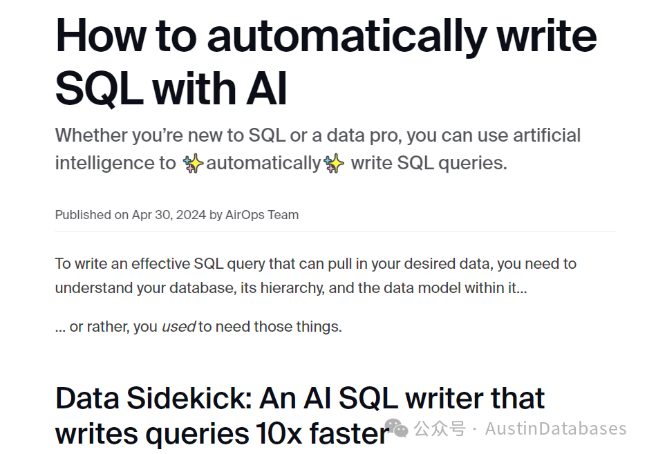 SQL 的撰写和优化已经开始了,将这个传统的工作,往AI上迁移了,已然有工具提出可以通过他来操控9种数据库产品,来进行SQL的撰写和优化。