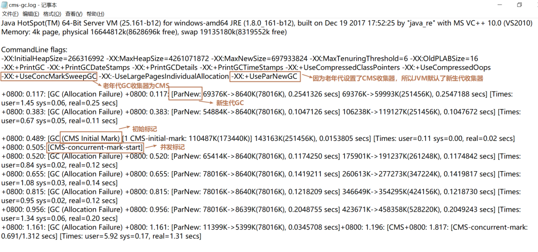 -XX:+UseConcMarkSweepGC-XX:+PrintGCDetails-XX:+PrintGCDateStamps-XX:+PrintGCTimeStamps-Xloggc:d:/dump/cms-gc.log