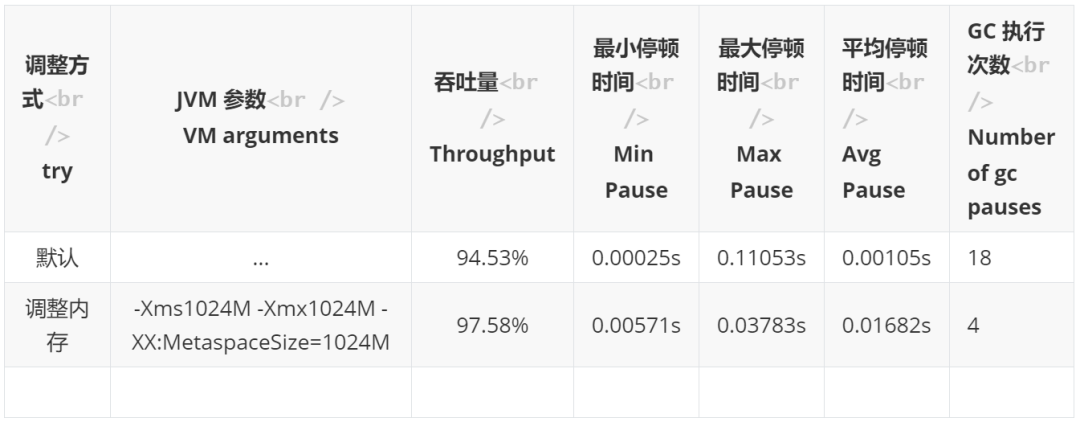 分析上表,容易看出好的方面是:吞吐量提高了,GC 次数减少了;坏的方面是:停顿时间增加了。