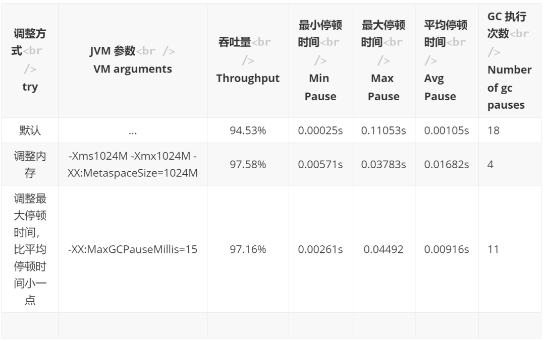 设置不同的 JVM 参数,分析输出的 GC 日志,从以下 3 个方面来判断 JVM 是否达到最佳效果: