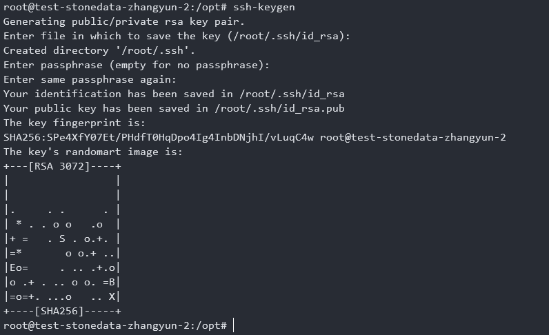 在安装包所在的服务器通过root用户执行命令生成公钥、私钥。