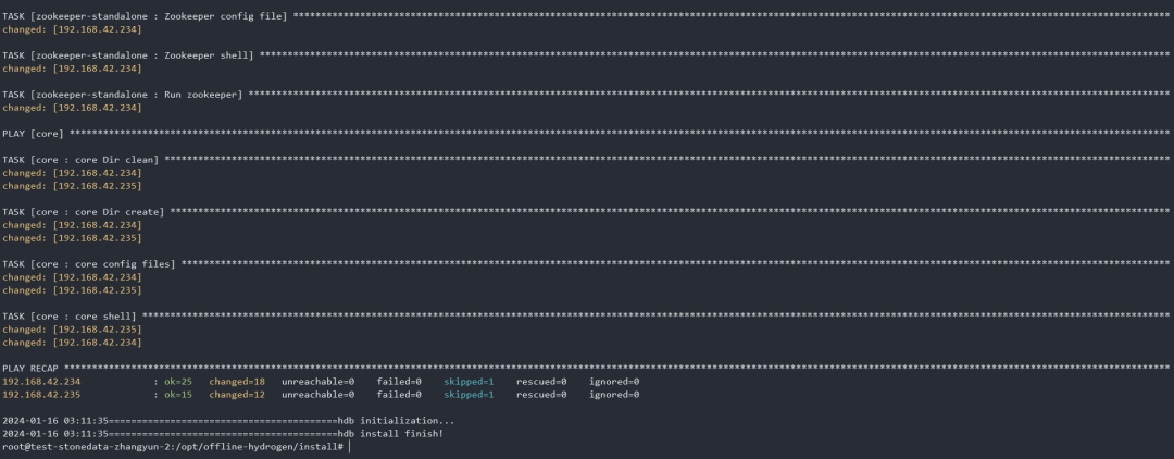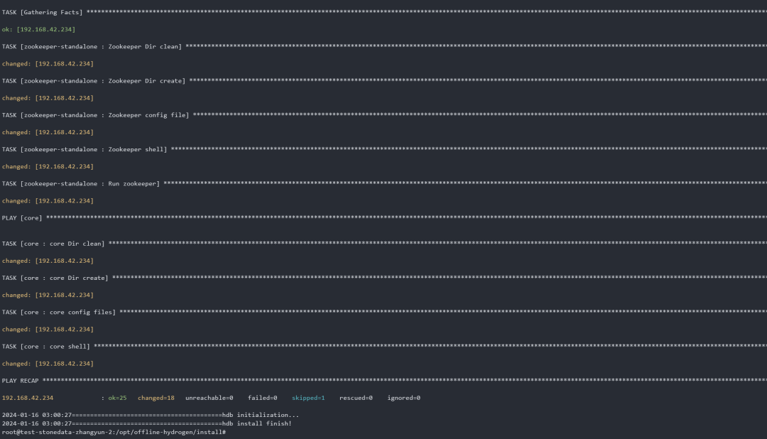 最后执行安装命令进行安装,安装时间较久,请耐心等待,当出现hdb install finish!表示已经安装完成。