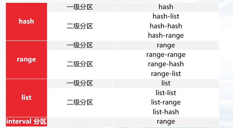 GBase 8c 分布式版本支持 兼容oracle 分区表功能,支持二级分区,9种分区组合,interval 分区。