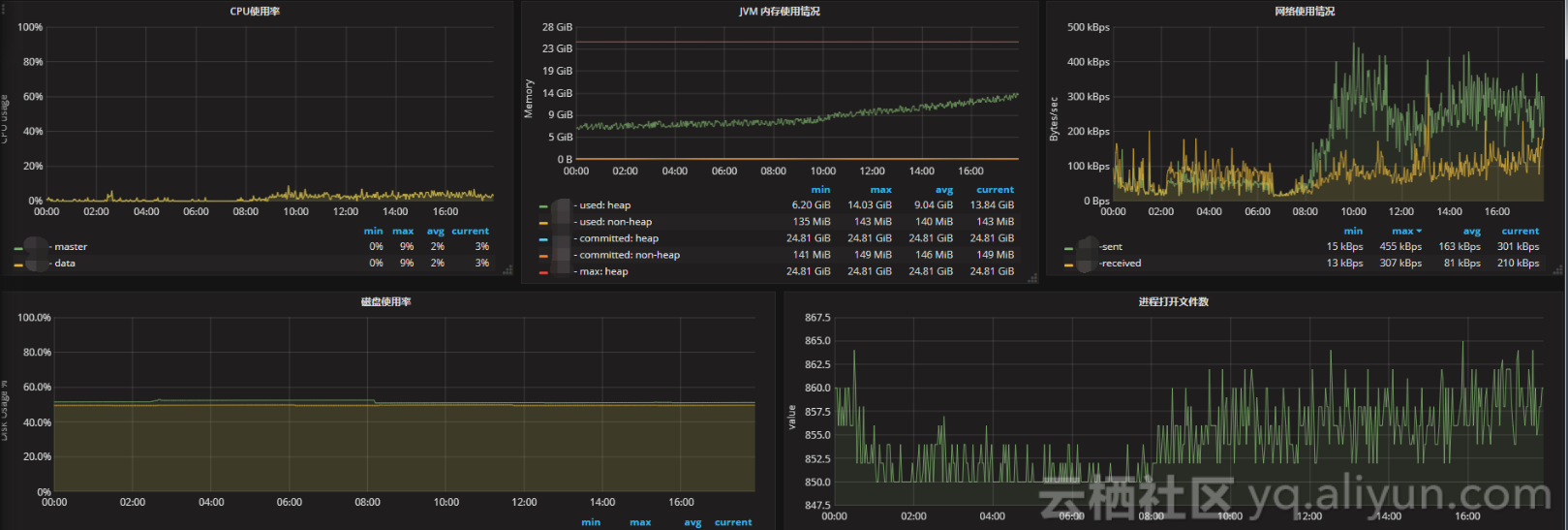 如果ES集群是写负载型,建议使用SSD盘,需要重点关注磁盘空间使用情况。当segment被创建、查询和合并时,Elasticsearch会进行大量的磁盘读写操作。