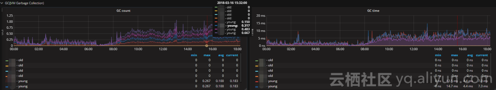 | elasticsearch_jvm_gc_collection_seconds_count | Count of JVM GC runs垃圾搜集数 |