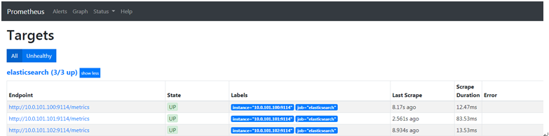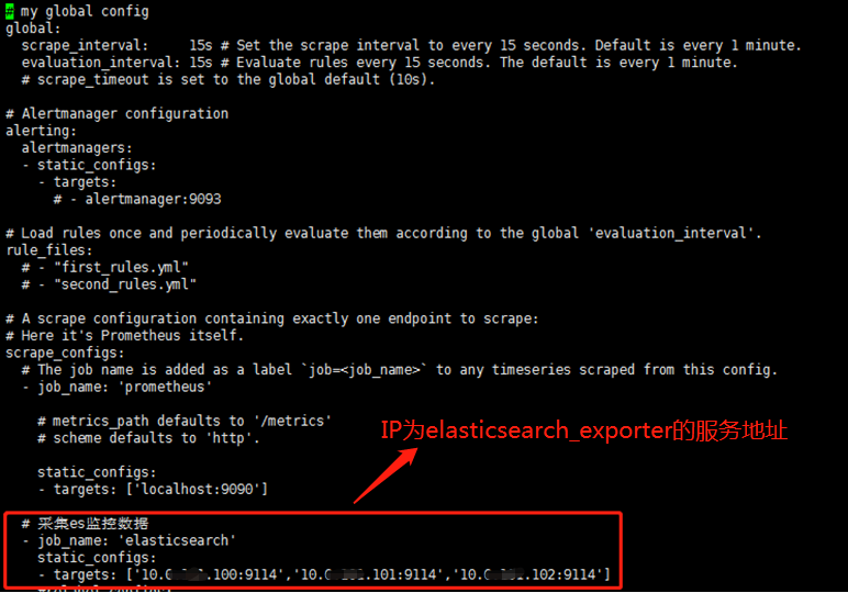 修改prometheus组件的prometheus.yml加入elasticsearch节点: