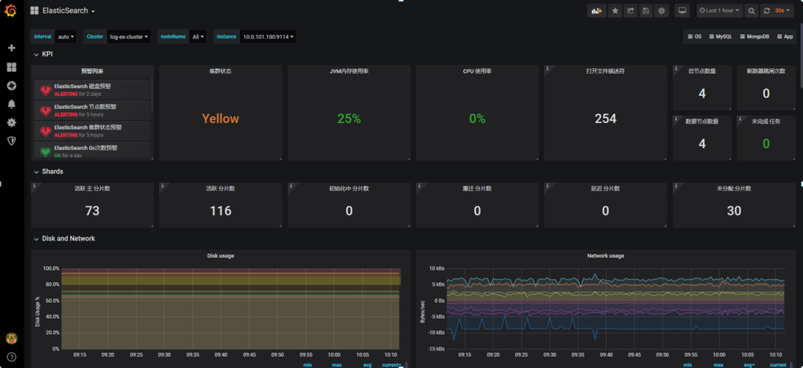 | relocating_shards | 当前节点正在迁移到其他节点的分片数量,通常为0,集群中有节点新加入或者退出时该值会增加 | elasticsearch_cluster_health_relocating_shards |
