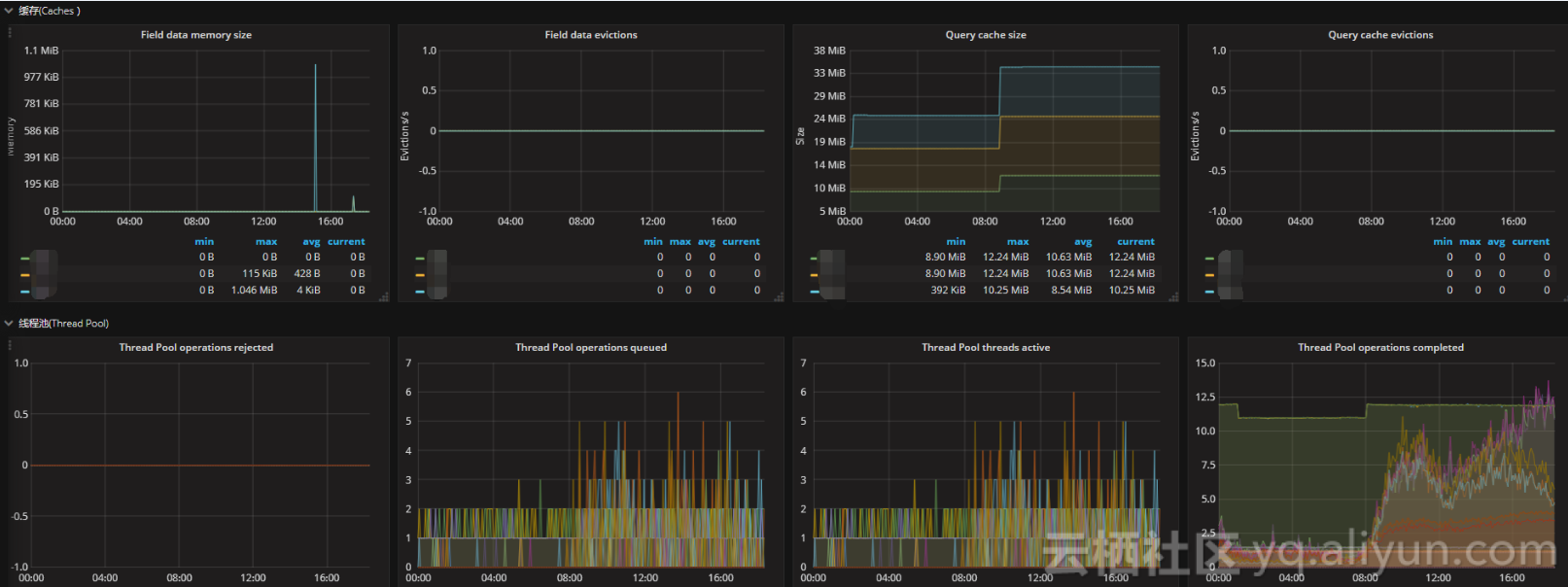 通过采集以上指标配置视图,Elasticsearch节点使用线程池来管理线程对内存和CPU使用。可以通过请求队列和请求被拒绝的情况,来确定节点是否够用。