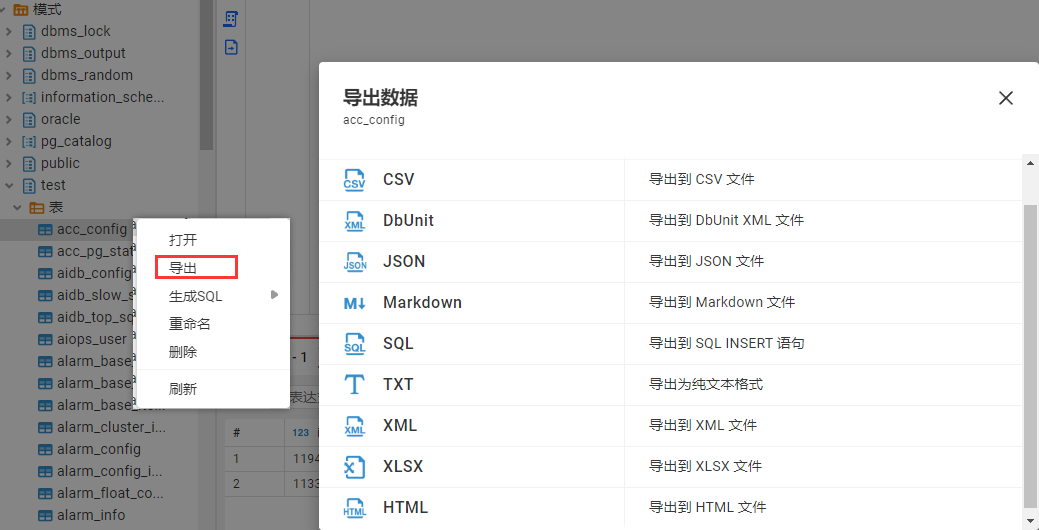 数据导出模块是 ADC 的关键功能之一,它允许用户将数据库中的数据导出到本地文件中,这为用户提供了灵活的数据迁移和备份方案。