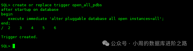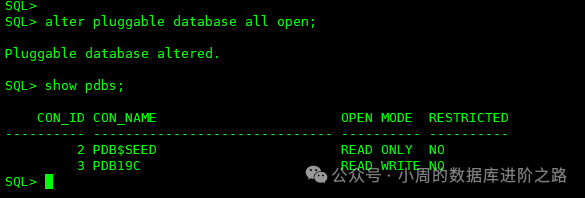 SQL> alter pluggable database all save state; #启动
