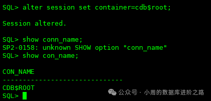 SQL> alter session set container=cdb$root; #名称是固定的