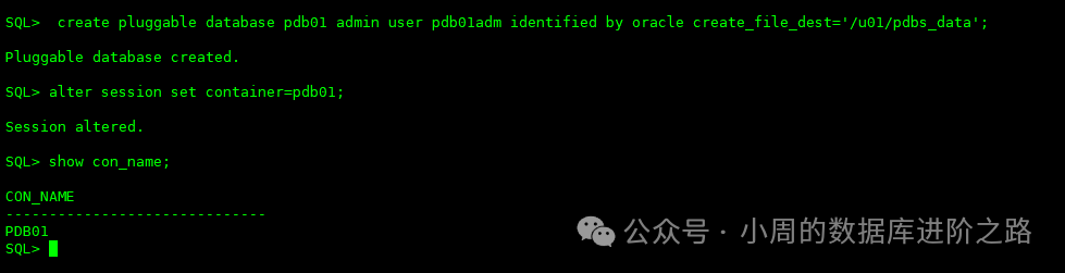 SQL> alter session set container=pdb01;
