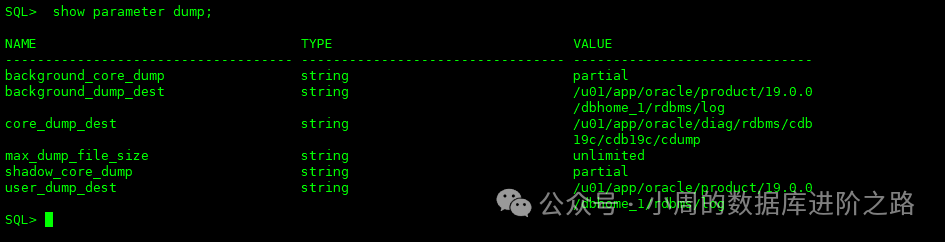 SQL> show parameter dump;