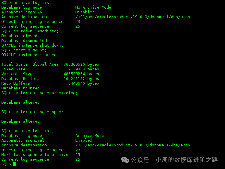 SQL> alter database archivelog;