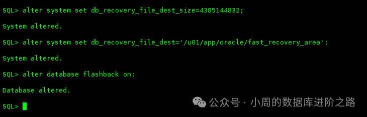 SQL> alter database flashback on;