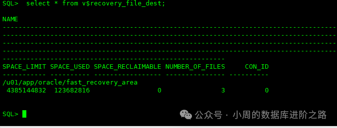 SQL> select * from v$recovery_file_dest;