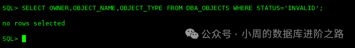 SQL> SELECT OWNER,OBJECT_NAME,OBJECT_TYPE FROM DBA_OBJECTS WHERE STATUS='INVALID';
