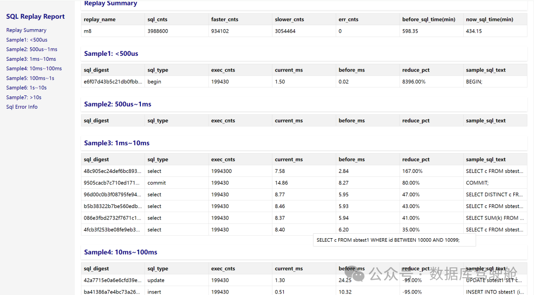 a. 最后,SQL-Replay 生成报告,提供查询兼容性和性能的见解。这些报告帮助数据库管理员和开发人员理解不同查询对系统的影响,并做出有关优化的明智决策。