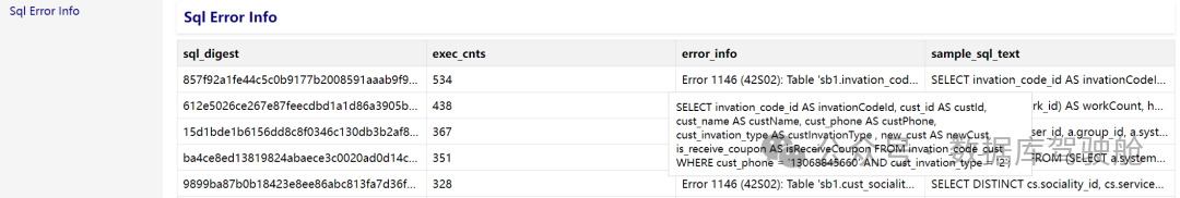 Sql Error Info 中,根据 sql_digest 以及 error_info(前 10 位)排序。