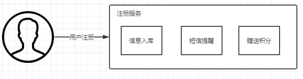 拿“用户注册”这个业务来说,除了要把用户信息保存到数据库之外,注册成功后,我们还需要给用户短信发送注册结果,通知积分系统为用户赠送积分等等。