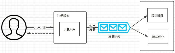 把信息入库,短信提醒,赠送积分等等操作写到不同的系统里,做成不同的服务,使系统之间做到解耦,不必把这些操作都放到注册服务里,同时可以做到系统解耦。
