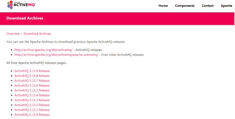 1、下载地址:http://activemq.apache.org/download-archives