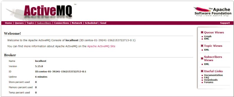 5、通过 http://你的ip地址:8161 访问 activeMQ 管理页面,如下: